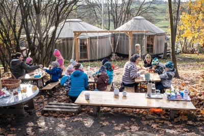Je 8:30 ráno. Ve školce se kromě prvních dětí začínají scházet také účastníci Exkurze do lesní školky. Dvanáctka návštěvníků tvoří zhruba stejně početnou skupinu jako páteční děti. Zatímco se děti věnují ranním aktivitám, dospělí se pomalu scházejí a koordinátorka Tereza Vavrečková představuje jednu ze svých školek – Lesní školku Jaata, která se nachází v Dolních Chabrech.